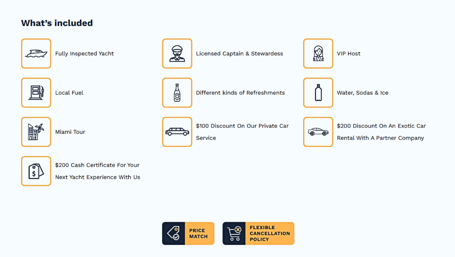 - Our Miami yacht rentals come with a kitchen, fridge, and bathroom onboard for your convenience.